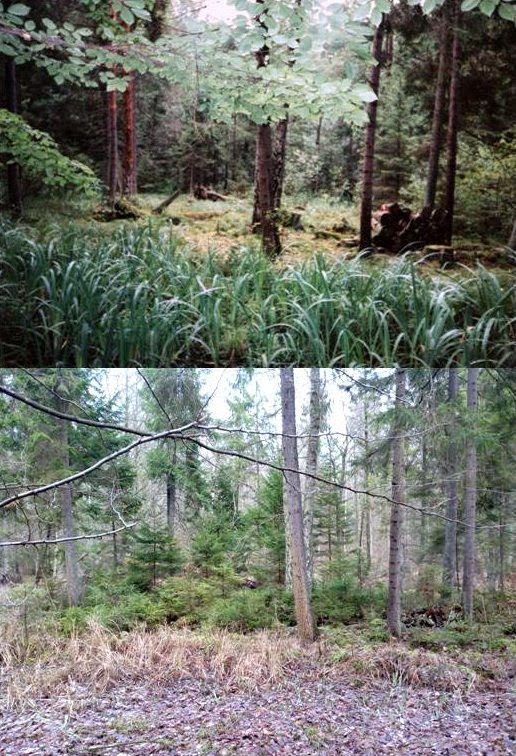 Las nie stoi w miejscu i przekształca się. Siedliska zmieniają się: olsy łęgowieją, bory wilgotne z czasem przypominają świerczynę borealną. Są też miejsca które bezpowrotnie tracą swój charakter. Siedliska te stają się nie tyle zdegradowane co unicestwione.